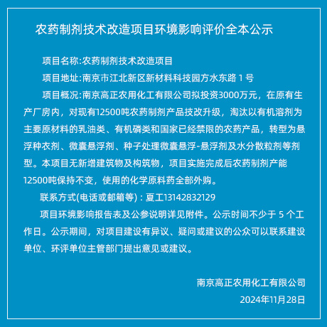 定將現有項目整體搬遷至江蘇省如東沿海經濟開發(fā)區。搬遷完成后,將形成年產1000噸戊唑醇、200噸吡丙醚、500噸噻蟲啉、200噸環(huán)丙唑醇原藥的生產規(guī)模... |